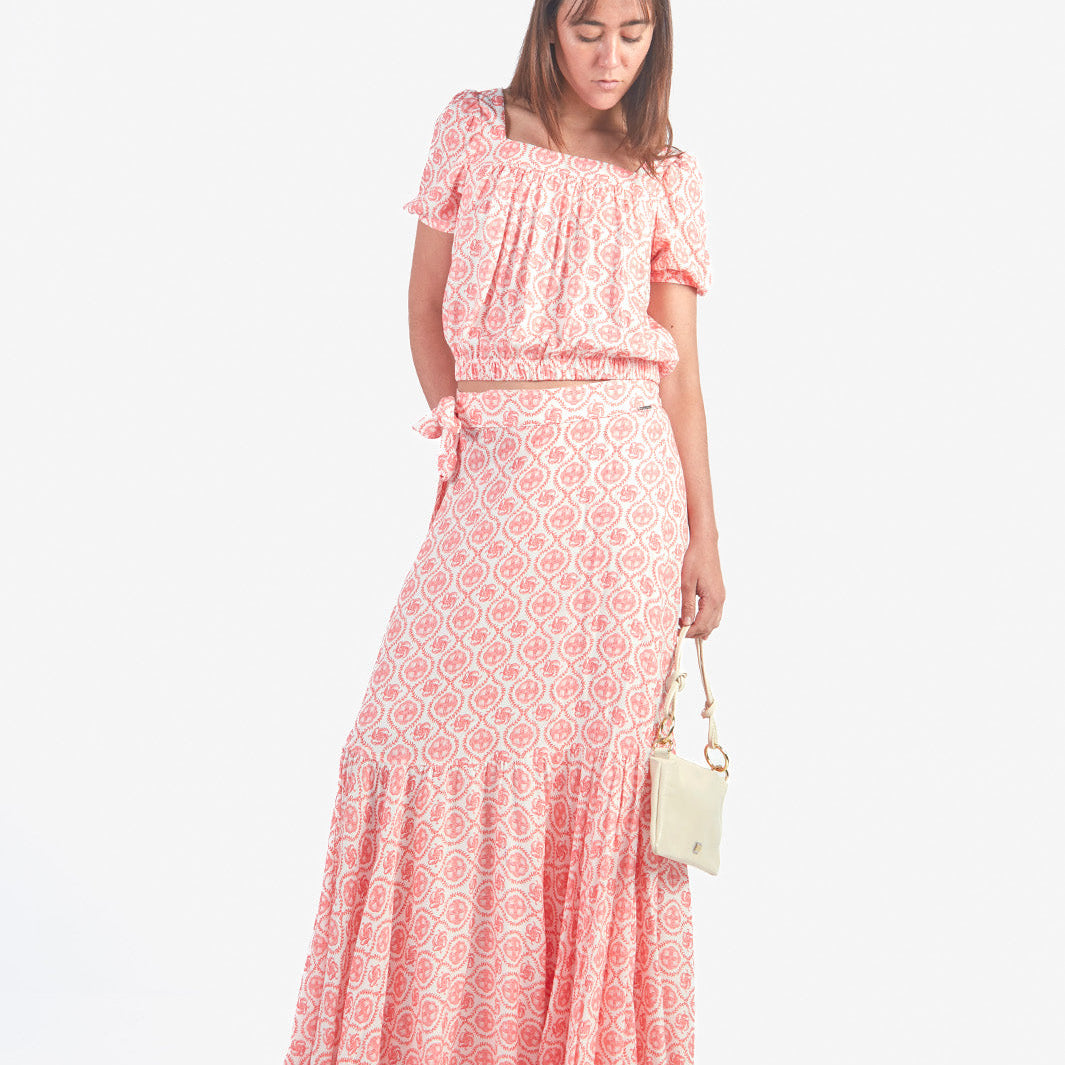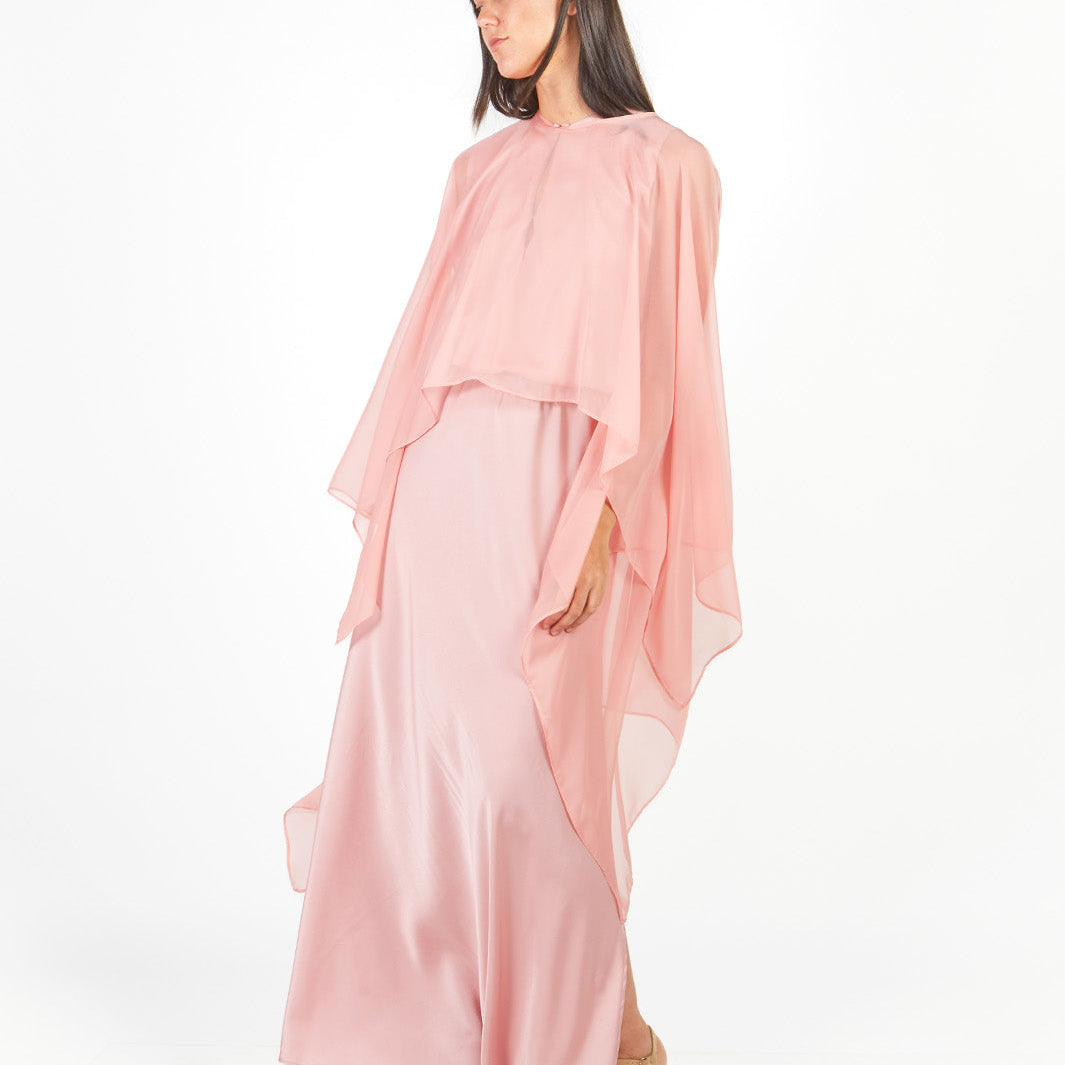 Capa de gasa asimétrica con espalda abierta ROSADO