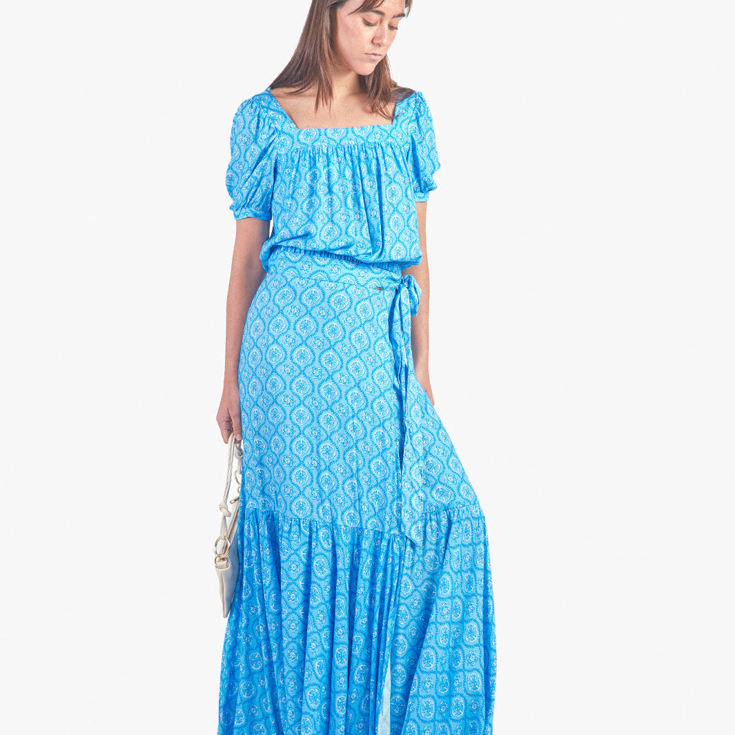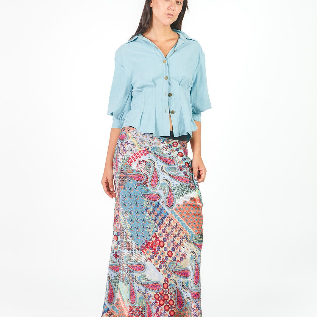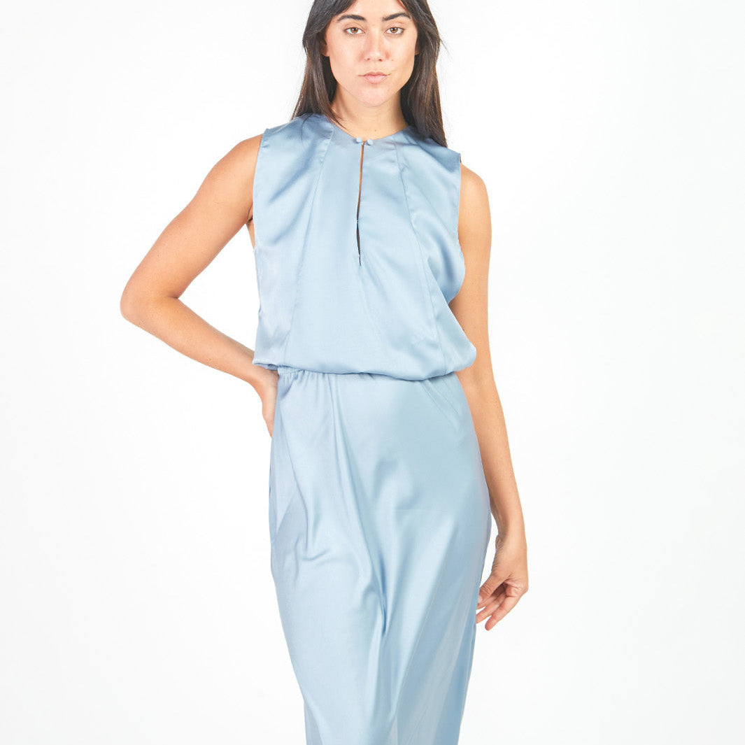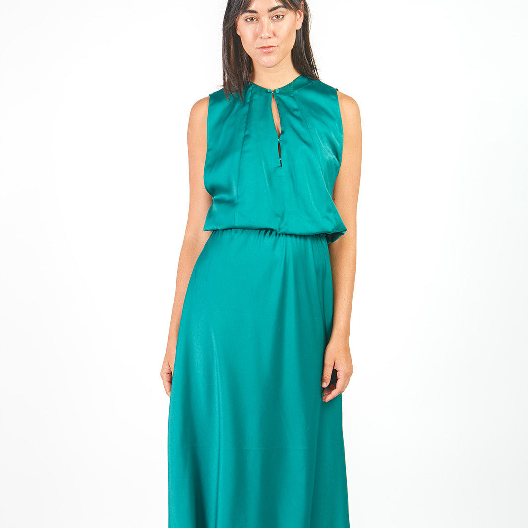 Capa de gasa asimétrica con espalda abierta VERDE AGUA